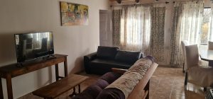 con 2 cuartos (uno con cama matrimonial mas una cama simple y otro cuarto con otra cama matrimonial y una cama simple. Living comedor-cocina y un estar con acceso al baño con Futón doble, y 1(una) cochera techada.